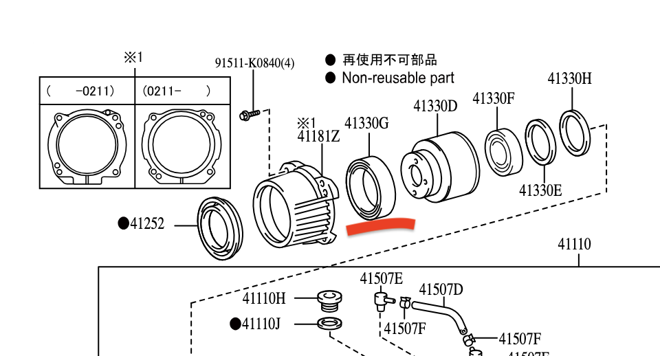 The issue is that Toyota want you to replace the whole coupler "Electro Magnetic Coupling Sub-Assembly part #41303-28013" that costs $500 to $1800 depending on the parts source. However to fix this problem you don't need a new coupler, you need a simple bearing replaced. The replacement bearing is NSK Japan 95DSF01 A1CG3 Differential Bearing for Toyota 90363-95007 95x120x17 mm. There are two part numbers for this bearing: 90363-95007 and the older 90363-95003. Afaik either will work. This electromagnetic coupler has been around quite a long time in Toyota's lineup, and the bearing appears in parts drawings for cars from the 90s. I searched and could not find the exact parts drawing that shows the internals of the coupling for the 3rd gen Sienna, and if you search for this bearing number for 3rd gen Siennas Toyota's databases they will tell you the bearing doesn't fit. Toyota parts databases say the bearing is for 2003-2007 models. There are a number of drawings online with the coupler assembly. I have attached one below. You can order this bearing from Toyota, however my experience was that if you tell the parts desk that your have a failing bearing in the electromagnetic coupler they will push you hard on replacing the whole unit for $1500-$2500. I actually had to hang up and call the parts desk on another day to order the bearing using part # 90363-95007 for $90 CAD, and picked it up when it arrived at the dealer. There are cheaper prices online, I just wanted the ability to return it if it did not fit.